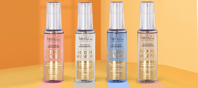 A Forever Liss conta com uma linha incrível de óleos capilares bons e baratos. Formulados com ativos naturais e muito potentes, como óleo de pracaxi, óleo de argan, óleo de semente de uva e vitamina E. O kit Óleos Capilares Superpoderosos atua diretamente na saúde dos fios, protegendo da umidade, fortalecendo a fibra capilar, reduzindo o frizz e estimulando o crescimento saudável. Confira os melhores óleos capilares e tenha cabelos mais fortes, macios e radiantes!