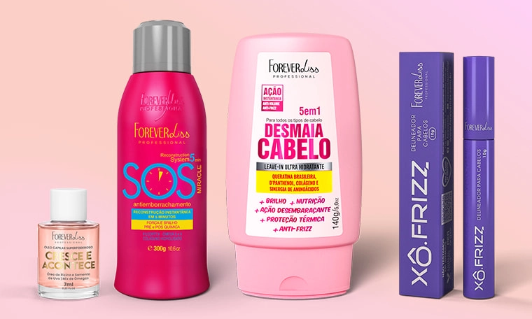 Os cosméticos Forever Liss foram criados para atender diferentes necessidades capilares, desde hidratação, controle de frizz e creme de pentear para o dia-a-dia, até reconstrução e produtos para o cronograma capilar.