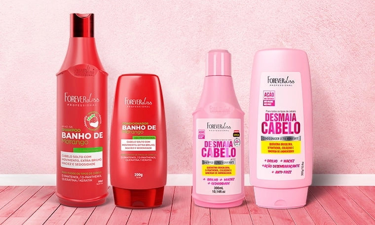 O kit shampoo e condicionador é uma escolha prática para quem busca cuidado completo no dia a dia. Há opções em diferentes linhas de produtos Forever Liss, com produtos de hidratação, reconstrução, controle de volume e manutenção da cor.